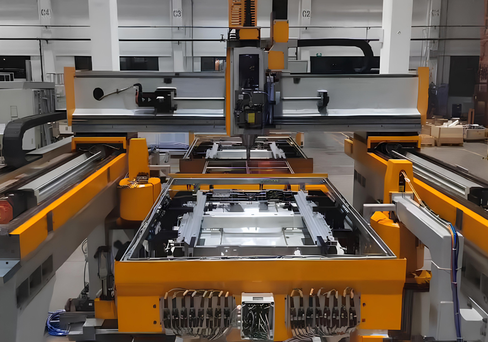 電池殼體CNC組合機床 電池托盤機加龍門CNC 電池殼體機加組合機床第1代 電池殼水冷板CNC組合機床加工 蓄電池盒總成FSW去飛邊 蓄電池盒總成CNC鉆孔及鋁屑收集